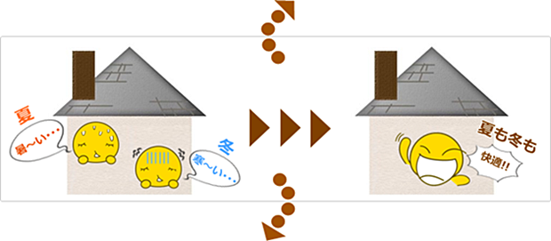 【特徴1】 特殊バルーンを配合した超軽量・低熱伝導性を有する中塗材は、室内温度の変化を低減させ、優れた断熱性・保温性を示します。 【特徴2】 熱反射機能を有する上塗材により、幅広い色目の範囲で夏季の熱暑から躯体の温度上昇を抑制します。 【特徴3】 上塗材は、紫外線や汚染性に対して優れた抵抗性を示します。また長期に亘り遮熱性を維持します。 【特徴4】 微弾性塗膜は、下地の微細なひび割れに追従し、雨水などの浸入を防ぎます。 【特徴5】 特殊設計により、かびや藻類などの微生物に対して強い抵抗性を示し、長期に亘り衛生的な環境を維持します。 |